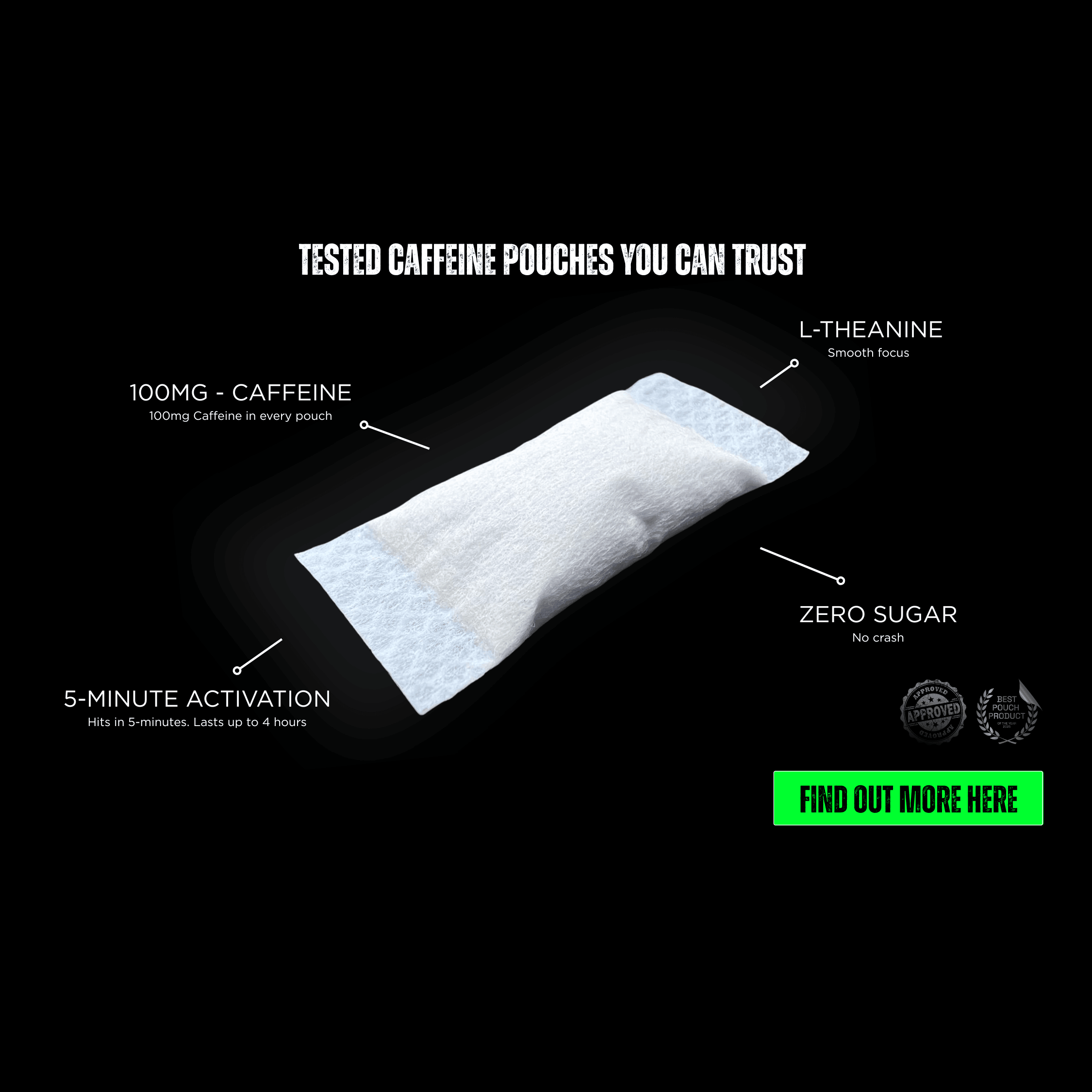 100mg caffeine per pouch, 15 Pouches per pack.
